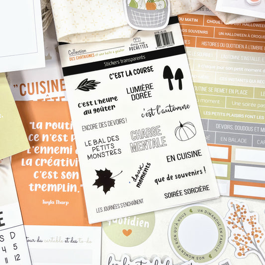 Stickers transparents - Des châtaignes et une boîte à goûter