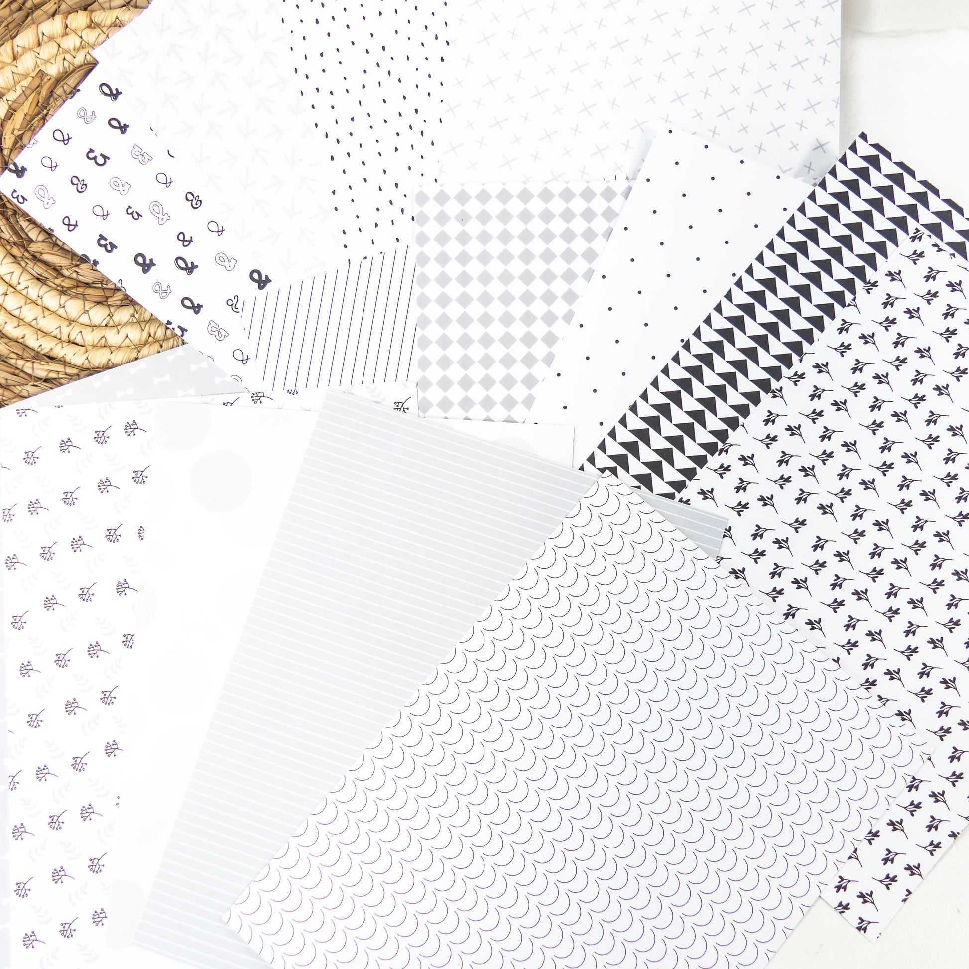 Sur le verso, des imprimés intemporels noir, gris, blanc, pour décorer le Journal de l'année.