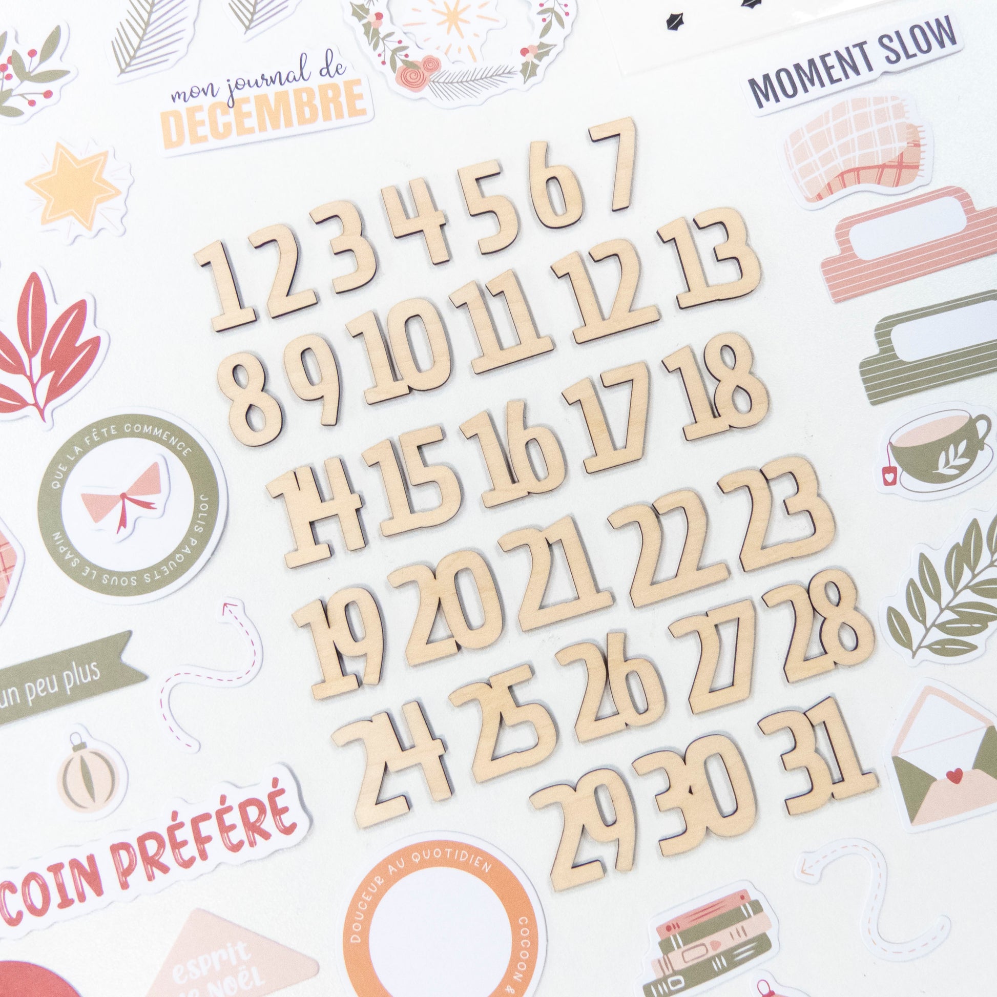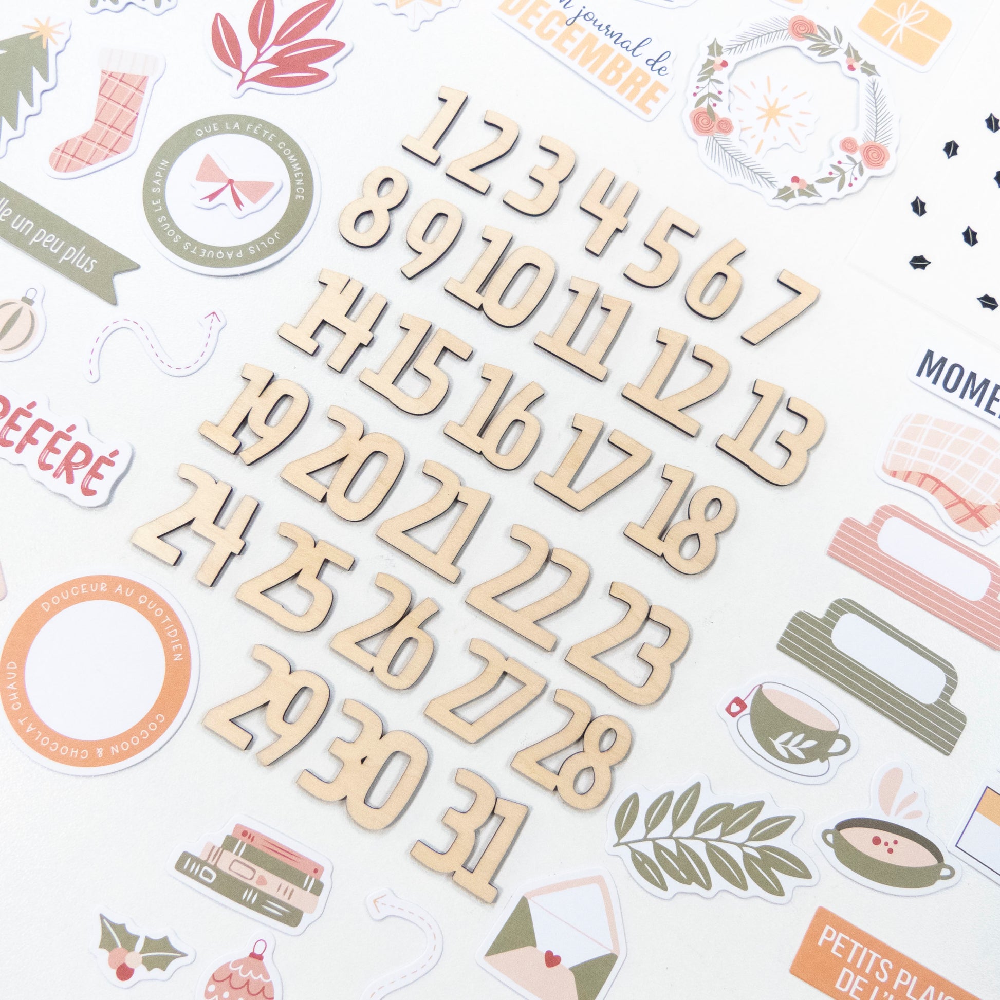 L'assortiment contient 31 découpes en bois du 1 au 31 pour numéroter Journal de Décembre, Calendriers de l'avent et bien plus encore