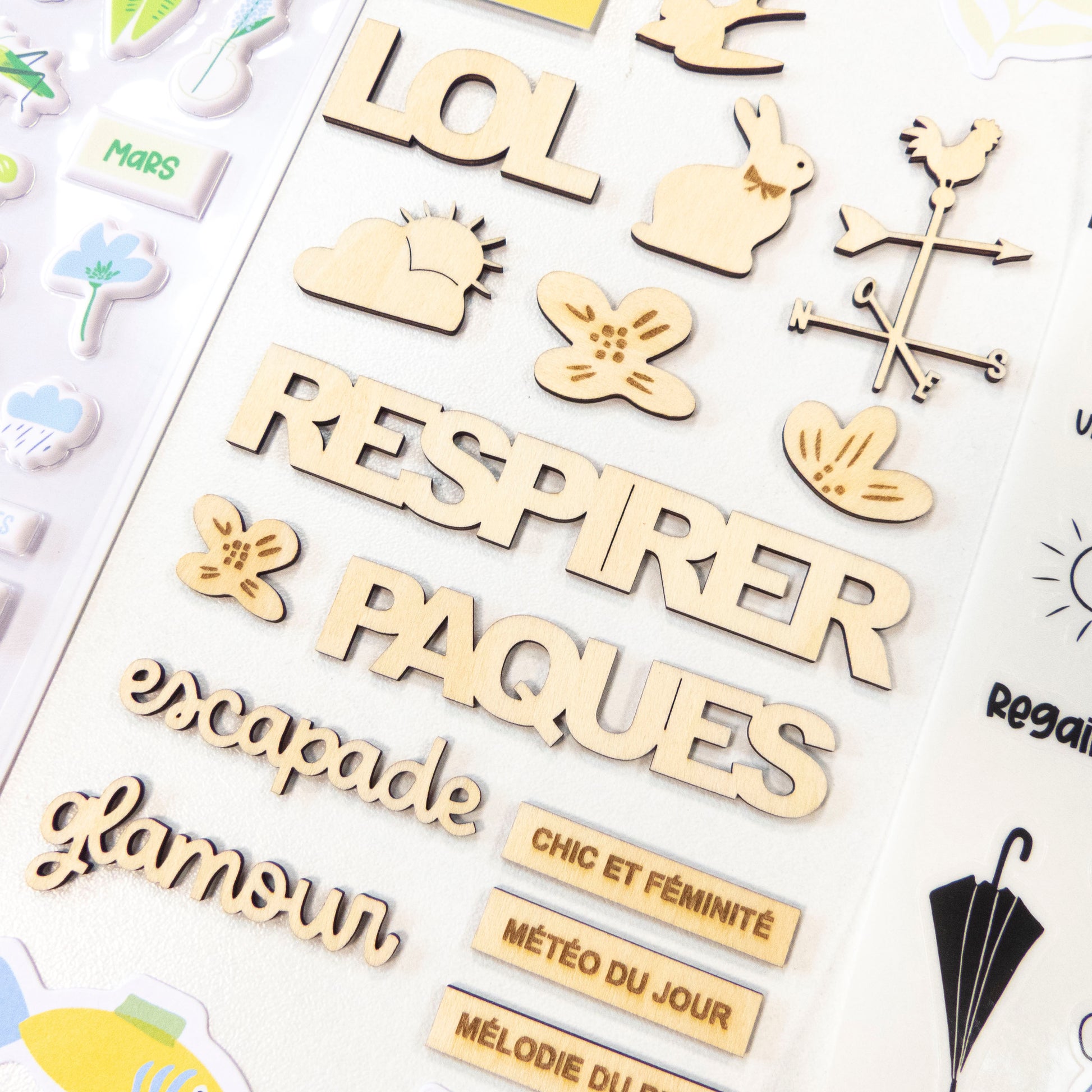Assortiment de décorations en bois de la collection Des fleurs et des saveurs.