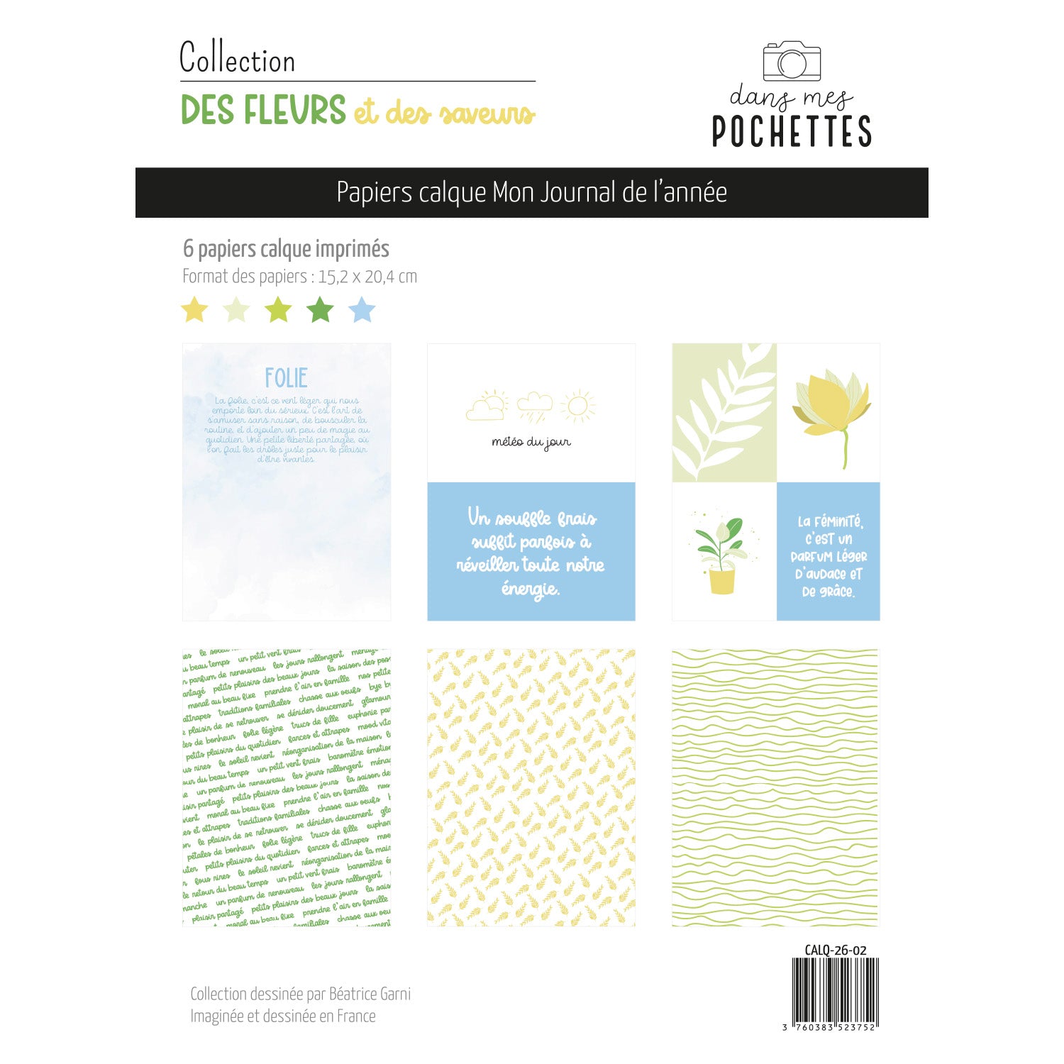 La collection contient 6 papiers calque imprimés sur le recto uniquement en 110g/m2