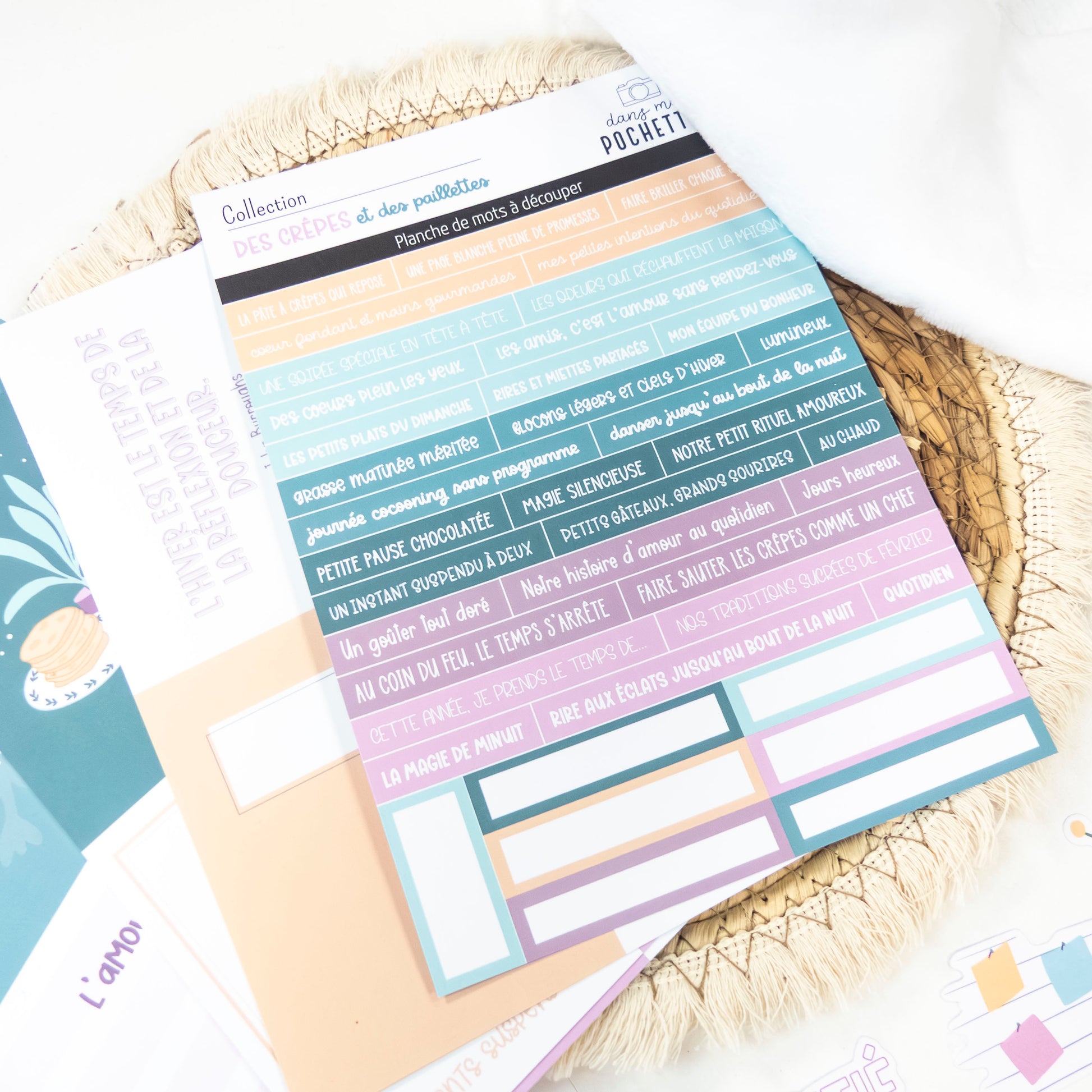 Cette planche de mots est présente dans les kits Papeterie, Scrapbooking et Premium.